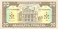 На реверсі банкноти розміщено гравюрне зображення Львівського оперного театру, також міститься напис Національний банк України і номінал, указаний цифрами й прописом. Окрім цього, на зворотному боці розміщено серію й номер банкноти, підпис голови правління НБУ, а також рік випуску: 1992. Дизайн обох боків доповнено орнаментом.