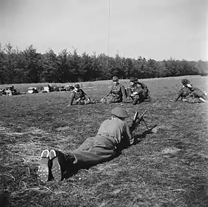 ![]() Німецькі військовополонені під охороною голландського кулеметника. Травень 1945 | |
