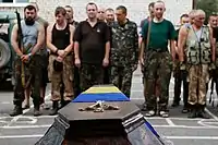 - Синяговський Тарас (псевдонім «Лисий», Полтава) — командир роти. На 20 червня знаходився в Луганській обласній лікарні на штучній вентиляції легенів — черепно-мозкова травма та поранення м'яких тканин плеча. Стан оцінювався як дуже тяжкий[59]. 27 червня був визволений з полону та повернувся до Полтави[60].