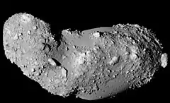 ![]() Asteroid 25143 Itokawa observed by Hayabusa. Image provided by JAXA. | |