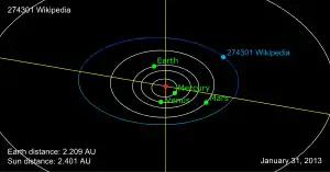 - База даних малих космічних тіл JPL: 274301 Вікіпедія (англ.). Процитовано 2014.04.30. Останнє спостереження 2014.03.20.