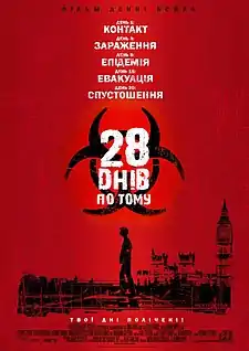 «28 днів по тому» (англ. 28 Days Later) — британський постапокаліптичний фільм режисера Денні Бойла. У головних ролях знімалися Кілліан Мерфі і Наомі Гарріс.