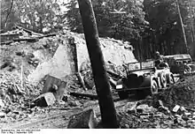 ![]() Німецькі війська просуваються територією Польщі. Польська кампанія (1939). вересень 1939 | |