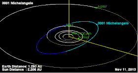 - 3001 Мікеланджело — Об'ємне інтерактивне відображення орбітального руху (англ.)