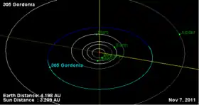 - База даних малих космічних тіл JPL: 305 Гордонія (англ.). Процитовано 2014.05.02. Останнє спостереження 2013.11.14.