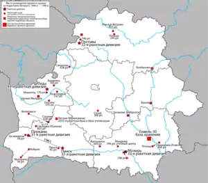 - 402-й ракетний полк (Вєтрино, Вітебська область) з ПУ Р-12;