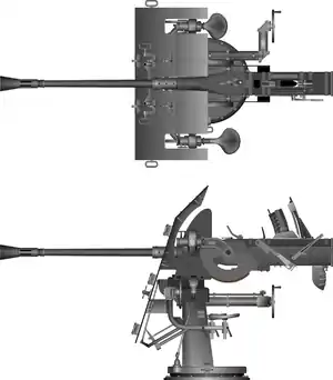 ![]() Схематичне зображення 37-мм зенітної гармати Flak M42 на установці LM 42U | |