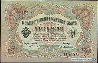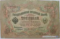 ![]() 3 рубля 1905 року Лицьова сторона (Аверс) Керуючий— О. В. Коншин |