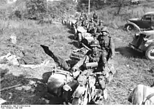 ![]() Колона німецьких мотоциклістів на дорогах Бельгії. Битва за Дюнкерк. Французька кампанія. Травень 1940 | |