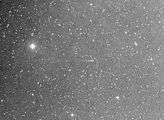 ![]() Астероїд 4015 Вілсон — Гаррінгтон відкритий 19 листопада 1949 року з 48-дюймового телескопу Шмідта у Паломарській обсерваторії як комета 107P/Вілсона — Гаррінгтона. Зображення покращене ЄПО задля відображення хвоста. | |