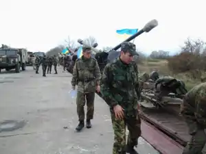 У лютому 2014 року почалася російська збройна агресія проти України: Росія вторглася до Криму та анексувала його. Вже у квітні розпочалися бойові дії війни на сході, після захоплення Слов'янська Донецької області російськими диверсійними загонами під командуванням Ігоря Гіркіна. Влітку українські війська вели бої на російсько-українському кордоні, під Донецьком, Луганськом, та на Приазов'ї, ізолюючи угруповання бойовиків від постачання з Росії та розсікаючи утримувані ними території. Після втручання регулярної російської армії, українські сили зазнали низку поразок і були змушені відійти з-під Луганська, Іловайська та Новоазовська.