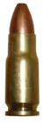- штатний набій 5,45 × 18 мм МПЦ з оболонковою кулею 7Н7 з складовим осереддям у вигляді зрізаного конуса (попереду сталевий, ззаду свинцевий)[6]. Вага кулі 2,4 г. Дулова енергія 129 Дж. Пробиває 45 шарів кевларової тканини.