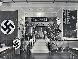 50-річний ювілей Адольфа Гітлера, 20 квітня 1939 року, святкувався як загальнонаціональне свято нацистської Німеччини, урочистості відбулися і за межами країни. Подарунки і телеграми зі словами вітання надійшли з усіх німецьких регіонів та союзних держав. Країни Заходу дипломатично проігнорували цю подію. Нацистська преса і радіо вихваляли фюрера довгими передовицями, серією передач і коментарів. В Берліні влаштували найбільший в історії Третього Рейху військовий парад. У ньому взяло участь до до 50 000 солдат Вермахту, Люфтваффе, флоту і СС.