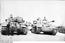 ![]() Підрозділ 505-го важкого танкового батальйону на танках «Тигр» на Східному фронті. 1944 | |