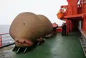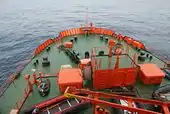 Вид на бак із капітанського містка. Надувні човни для обслуговування круїзних пасажирів