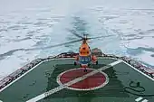 Вертоліт Мі-2 злітає з корми на ходу криголама