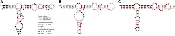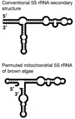 Мітохондіральна 5S рРНК більшості гетероконтів демонструє широке розмаїття вторинних структур.[22] Найбільш незвичною є мітохондріальна 5S рРНК з бурих водоростей, в якої закриваюча спіраль I, яка мала б поєднувати 5′ і 3′ кінці молекули, замінена на шпильку (малюнок).