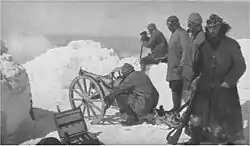 | Французька 65-мм гірська гармата зразка 1906 року | 390 | 3,81 | 0,5 | ? | 330 | 6,5 | 8 | -9 +35 |