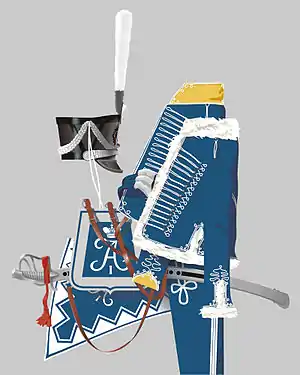 Полкова гусарська уніформа в 1812 році мала таке забарвлення: доломан синій, ментик синій, комір і вилоги доломана жовті. Хутро ментика офіцерів — сіре смушеве, унтер-офіцерів — чорне, солдатів — біле. Пояс-кушак синій. Шаровари сині. Ташка синя з білою обробкою. Вальтрап синій з білою обробкою. Приладовий метал — срібло.