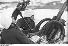 ![]() Підрозділ військ ППО, оснащений зенітними гарматами 20-мм FlaK 30/38, на вогневій позиції. Німецька окупація Норвегії. Берлевоґ, 1942 | |