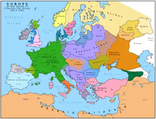У Східній Римській імперії продовжується правління Лева V Вірменина. Завершилося правління Карла Великого у Франкському королівстві, розпчалося правління Людовика Благочестивого. Північ Італії належить Франкському королівству, Рим і Равенна під управлінням Папи Римського, герцогства на південь від Римської області незалежні, деякі області на півночі та на півдні належать Візантії. Піренейський півострів окрім Королівства Астурія займає Кордовський емірат. В Англії триває період гептархії. Існують слов'янські держави: Карантанія, як васал Франкського королівства, та Перше Болгарське царство.