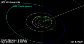 - 886 Вашингтонія — Об'ємне інтерактивне відображення орбітального руху (англ.)