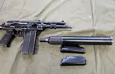 - «На смену тяжелому 7,62-миллиметровому автомату АКМС с прибором для бесшумной и беспламенной стрельбы пришел 9-миллиметровый бесшумный малогабаритный автомат 9А-91»