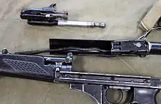 | Дія | поворотний затвор, відведення порохових газів |