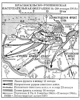 | 1 січня | L-й ак | 18 А | Група армій «Північ» | Оранієнбаум |