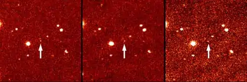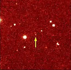 ![]() Зображення Седни, отримане при відкритті (планету позначено стрілкою) | |