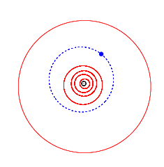 ![]() Схема орбіти 9912 Доніцетті (синій) відносно планет (червоний; до Юпітера) та Сонця (чорний) | |