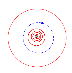 ![]() Синім — орбіта 9954 Брахіозавр, червоним — орбіти планет, чорним — Сонце | |
