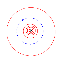 ![]() Показані орбіти: синім — 9999 Уайлс, червоним — планети (по Юпітер). Чорним показано Сонце. | |