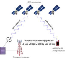 A-GPS (англ. Assisted GPS) — технологія, яка прискорює «холодний старт» GPS-приймача. Прискорення відбувається завдяки інформації, отриманій через альтернативні канали зв'язку. Часто використовується в стільникових телефонах, що містять приймач GPS. Дуже часто плутають з LBS.
