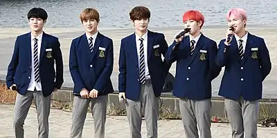 ![]() A.C.E на вуличному виступі у Банпо-доні, листопад 2019. Зліва направо: Чан, Донхун, Джун, Бьонкван, Вау | |