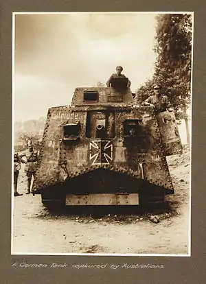 ![]() Пізня репліка танку A7V «Вотан» під час бойових дій в Австралії | |