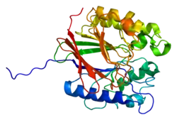 Кодований геном білок за функцією належить до гідролаз. Білок має сайт для зв'язування з іонами металів, іоном заліза. Локалізований у лізосомі.