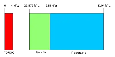 Такий частотний розподіл дозволяє розмовляти по телефону, не перериваючи обмін даними тією ж лінією.