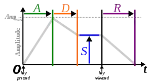 Коли реальний музичний інструмент звучить, його гучність змінюється із часом. Закон її зміни варіює від інструмента до інструмента, наприклад, орган при натиснутій клавіші відповідної ноти відтворює її з постійною гучністю, а гітара відтворює звук максимально голосно тільки в момент удару по струні, після чого він плавно загасає.