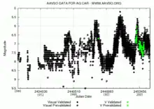 AG Кіля (AG Carinae, AG Car) — зоря сузір'я Кіля. Спектральний клас: B2:pe, OBe, B(2)pe, WN11h, B9/A0I, B2/3Ib, WN11, B1/2I. Маса: 55M☉ (M☉ = (1,98847 ± 0,00007)⋅1030 кг). Радіус: 275±225 R☉ (R☉=6,960⋅108 м = 0,004652 астрономічної одиниці). Швидкість обертання: 220 км/c. Блиск: 7,00, 7,57, 6,96, 7,73±0,3, 7,3204±0,0258, 5,42±0,02, 5,084±0,046, 4,531±0,015, 8,11±0,44, 7,35±0,37, 7,18±0,41. Спостерігається виключно у телескоп. Абсолютна зоряна величина: −8. Cвітність: 1,5106 L☉. Клас змінних зірок: яскраві блакитні змінні. Паралакс: 0,1532±0,0291 мілісекунда дуги, 0,19±0,7 мілісекунда дуги, 0,4±0,22 мілісекунда дуги. Відстань від Землі: 1338 світлових років.