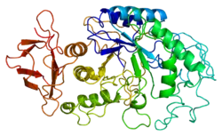 Кодований геном білок за функціями належить до гідролаз, глікозидаз. Задіяний у такому біологічному процесі як вуглеводний обмін. Білок має сайт для зв'язування з іонами металів, іоном кальцію, хлоридом. Секретований назовні.