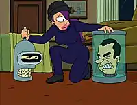 - Бендер називає першого в історії президента-робота «Джон Квінсі Рахівниця» ((англ.) «John Quincy Adding-Machine») — алюзія на ім’я шостого президента США Джона Квінсі Адамса.