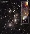 Скупчення галактик Abell 2744 — надзвичайно далекі галактики, виявлені з допомогою гравітаційного лінзування (16 жовтня 2014)[9].