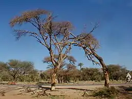Невисоке дерево висотою до 5 — 6 м або великий чагарник. Молоді гілки мають потрійні, загнуті вниз гачком шипи. У корі поблизу камбію утворюється камедь.