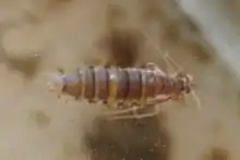 Маленький метелик з розмахом крил 11-13 мм. Передні крила гострої форми. Довжина переднього крила близько 6 мм. Забарвлення монотонне світло-сіре або з плямою білого кольору в центрі. Задні крила білі. Самиці бувають двох форм: більшість самиць з розвиненими крилами, більші за самців. Друга форма — безкрилі самиці: у них є лише невеликі зачатки крил. Дана форма самок мешкає під водою і трапляється переважно на півночі ареалу. На ногах у них є розвинені плавальні щетинки.