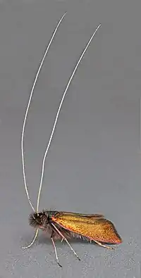 ![]() Adela cuprella на квітці верби (Salix) | ||||||||||||||