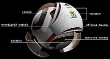 Сфера з восьми термосклеєних рельєфних панелей. Панелі з етиленвінілацетату та термополіуретану відливаються об'ємними. Поверхня м'яча вкрита канавками за технологією Adidas «Grip 'n' Groove», що покликана забезпечити його кращі аеродинамічні властивості.