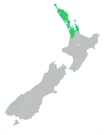 Нова Зеландія: Північний острів, півострови Нортланд і Коромандел, на південь до 38 гр.пд.ш. Вид росте в основному в горах на 150-400 м, але, як правило, можна знайти на 0-600 м над рівнем моря. Живе в лісі, який зазвичай включає Podocarpus totara, Podocarpus cunninghamii, Dacrydium cupressinum, Prumnopitys ferruginea. Ґрунти глибокого вивітрювання, безплідні глинисті з базальтовою основою. Річна кількість опадів становить близько 1650 мм / рік на рівні моря, піднявшись приблизно до 2500 мм / рік на найвищих відмітках.