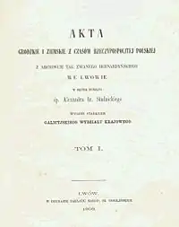 Akta grodzkie i ziemskie z czasów Rzeczypospolitej polskiej z Archiwum tak zwanego bernardyńskiego we Lwowie — видані у 25-ти томах у 1868—1935 роках у Львові опрацьовані актові записи з часів Королівства Польського, Республіки Обох Націй (Речі Посполитої). Кошти для видання надав головно вчений, граф Александер Стадніцький.[1] Виданню сприяв Галицький крайовий виділ. Іван Вагилевич брав участь у роботі над виданням.[2]