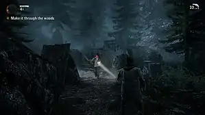 Нічний геймплей значною мірою заснований на протистоянні світла й темряви. На освітлених ділянках Алан лікується і відбувається збереження гри. Одержимі не можуть наблизитися до яскравого світла. Вейк володіє ліхтариком, який має два режими. За першого він світить звичайно, може засліплювати ворогів. За другого світло стає дуже яскравим і розсіює темряву навколо одержимих, роблячи їх вразливими до зброї. Але в такому випадку швидко розряджаються батарейки, яких є обмежений запас. З часом Вейк знаходить все потужніші ліхтарики. Іншими джерелами світла є фальшфейєри, ракетниці (засліплюють всіх ворогів поблизу) та світлошумові гранати (миттєво знищують одержимих). Ворогів можливо знищити стрілецькою зброєю: револьвером, дробовиком, помповим дробовиком або рушницею. Набої, так само як і батарейки чи фальшфейєри, беруться зі спеціальних сховків. У світлі ліхтарика стають видимими підказки, що ведуть до особливо великих сховків. Під час бою Алан здатний ухилятися, а також певний час бігти.